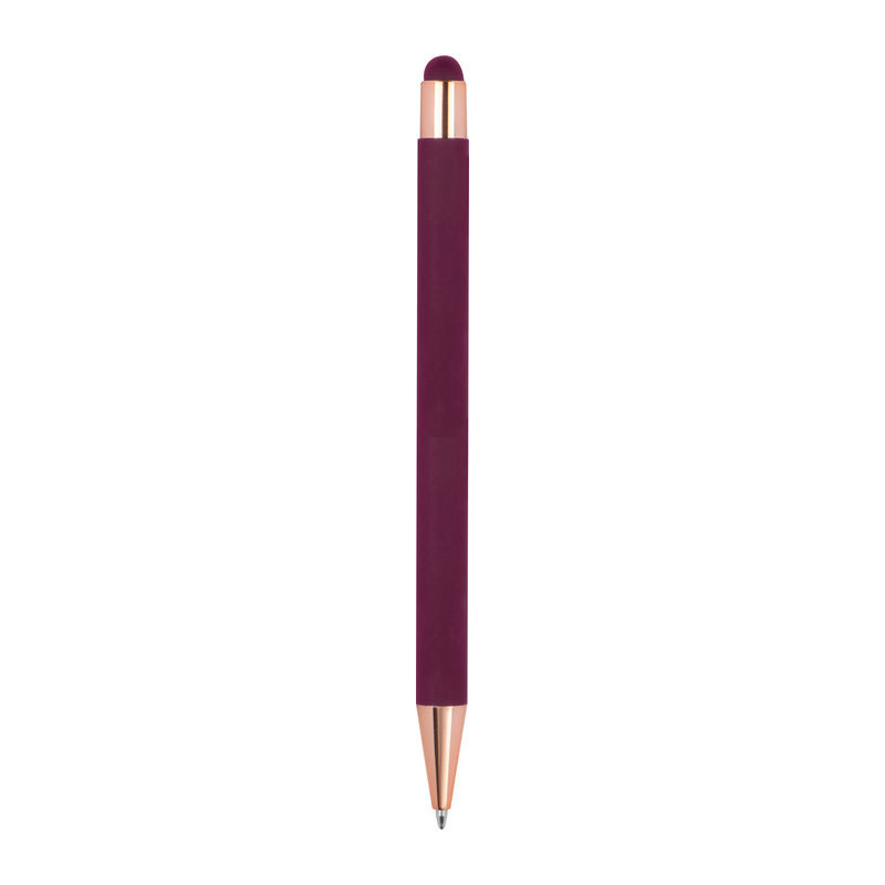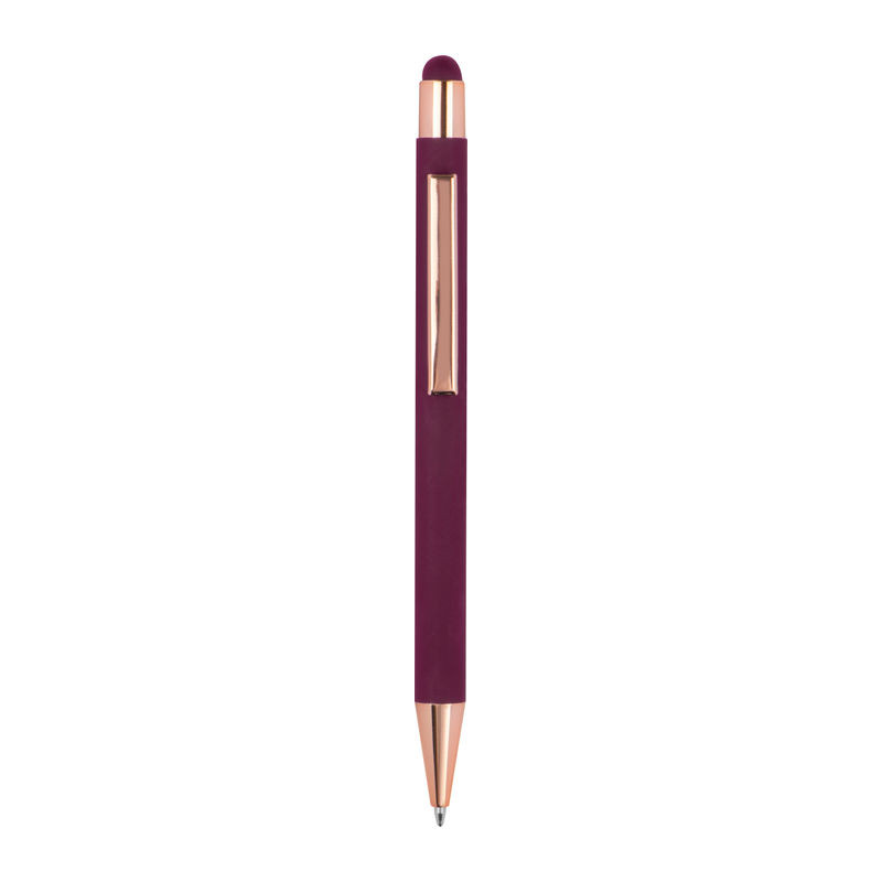 A Miramar gumírozott fém golyóstoll a tökéletes kiegészítő azoknak, akik igényes és stílusos íróeszközt keresnek. Bordó színével és rozéarany részleteivel kimagasló esztétikai élményt nyújt, miközben puha gumírozott felülete kényelmes és biztonságos fogást tesz lehetővé. A prémium minőségű fém test tartósságot és elegáns megjelenést garantál, ideális mind hivatali, mind magánjellegű használatra. Az utántölthető betét és a folyékony kék tinta gondoskodik a zökkenőmentes írásélményről, míg kompakt mérete (ø 0,9 x 14,7 cm) lehetővé teszi, hogy bárhova magával vihesse. Fedezze fel a Miramar golyóstoll tökéletes harmóniáját, ahol a formatervezés, a funkcionalitás és a minőség találkozik.