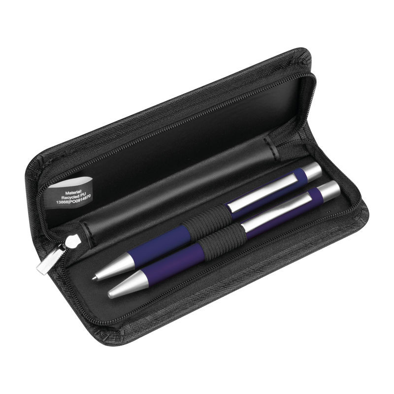 Az Uppsala írószett a professzionális íróeszközök tökéletes kombinációja, amely elegáns fekete dizájnnal és ezüst részletekkel teszi teljessé íróasztali kiegészítőid kollekcióját. A prémium minőségű METAL, RUBBER és LEATHERETTE anyagokból készült szett golyóstollat és mechanikus ceruzát tartalmaz, kék tintával, amely garantálja a folyamatos és precíz írásélményt. A kompakt 16,5 x 5,8 x 2,5 cm-es méretű, stílusos PU tok védelmet és könnyű hordozhatóságot biztosít, így akár irodában, akár üzleti tárgyalásokon mindig professzionálisan jelenhetsz meg. A gondosan megtervezett írószett nem csupán funkcionális eszköz, hanem igazi státuszszimbólum is, amely kiemeli egyéniségedet és üzleti érzékenységedet. Fedezd fel a kifinomult írás örömét az Uppsala írószettel, amely tökéletes ajándék üzleti partnereknek, kollégáknak vagy saját magadnak.